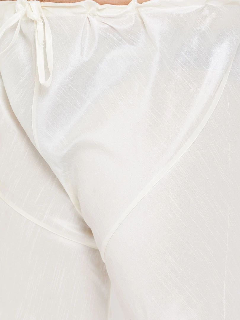 Cream color solid churidar, has drawstring closure