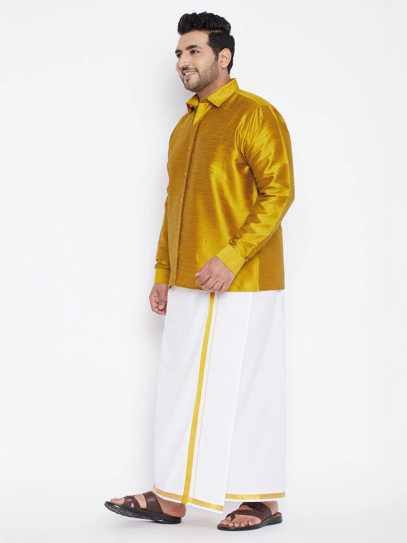 White solid mundu style Dhoti ,has a slip-on closure, gold coloured border