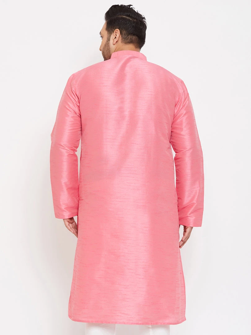 Pink straight kurta, has a mandarin collar, long sleeves, button placket, straight hem, and side slits