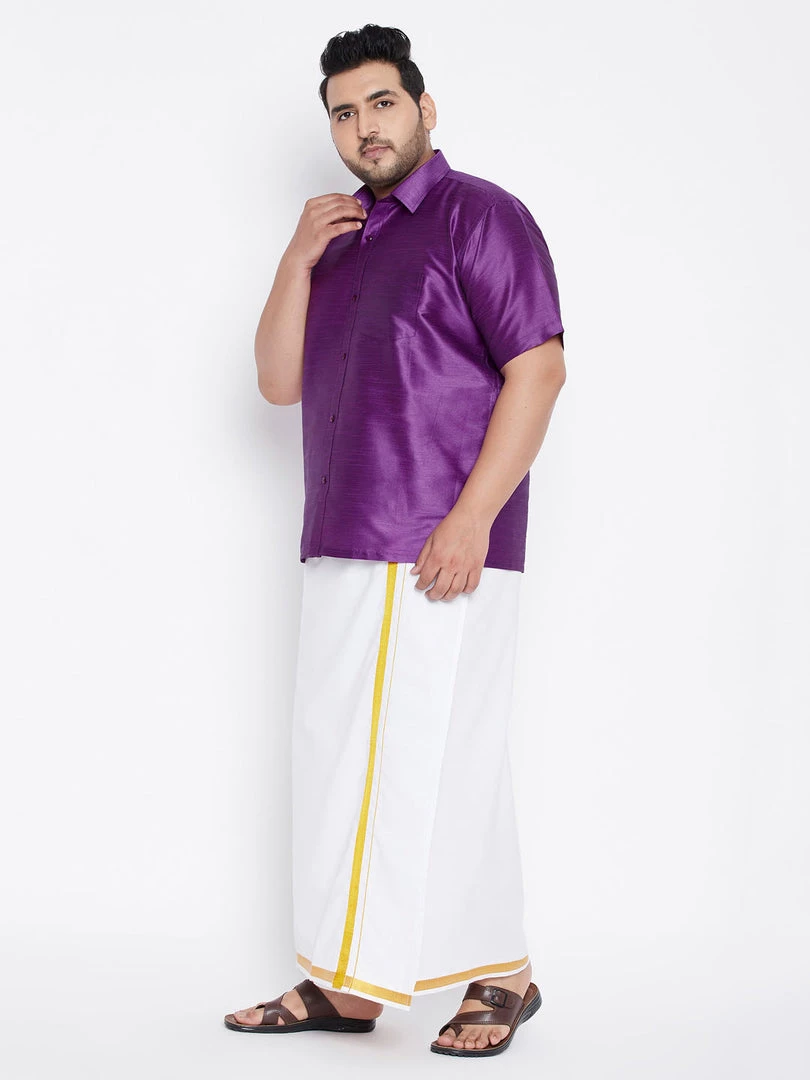 White solid mundu style Dhoti ,has a slip-on closure, gold coloured border