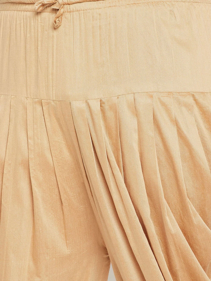 Rose gold solid dhoti pant, has elasticated waistband and drawstring closure