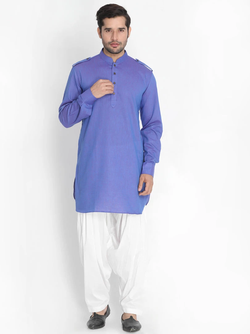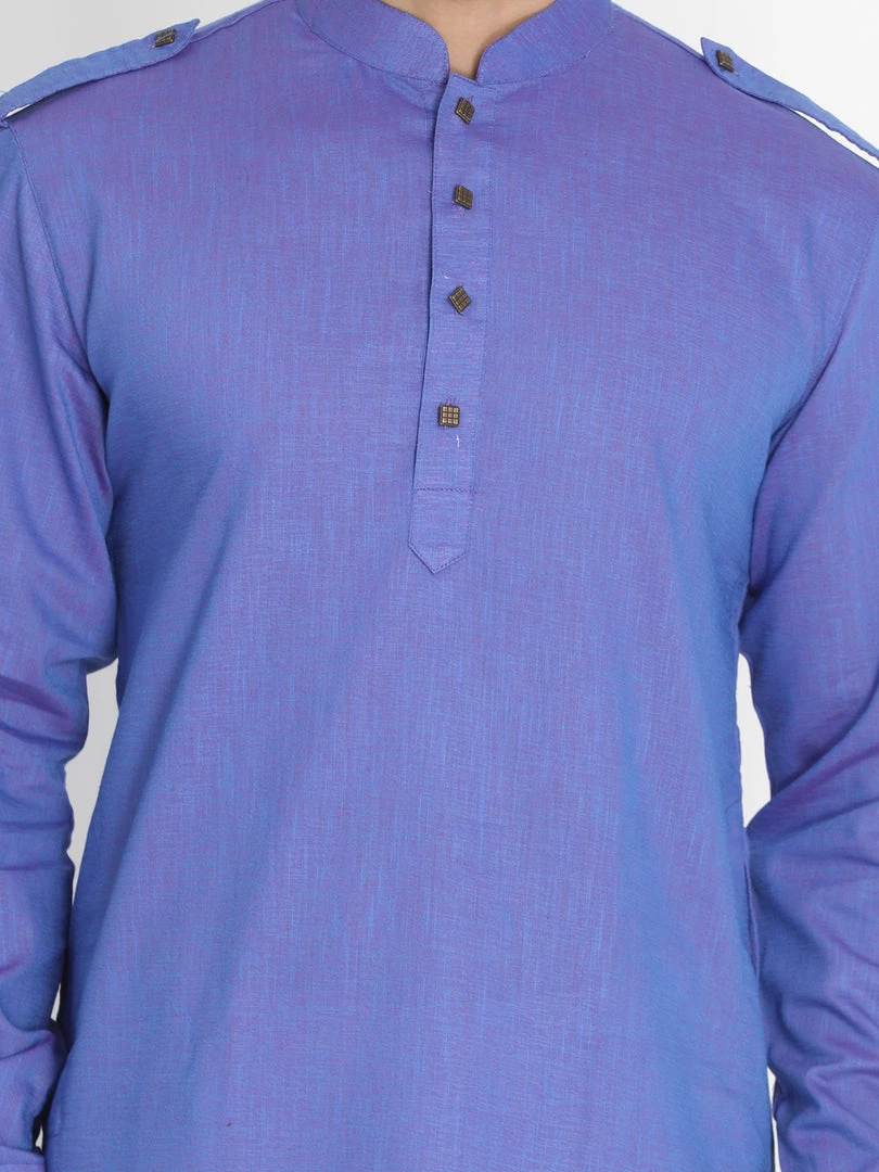 Purple straight kurta, has a mandarin collar, long sleeves, button placket, curved hem and side slits