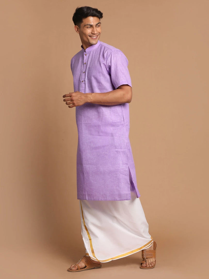 Vastramay brings to you this stylish South Indian style ethnic kurta and ready-to-wear mundu vesty style dhoti pant set for. These are perfect kurtas for any occasion including Festivals, ceremonies, Weddings, and Birthday parties. Popularly worn in South India on Vesty Mundu Dhoti along with an Angavastram.