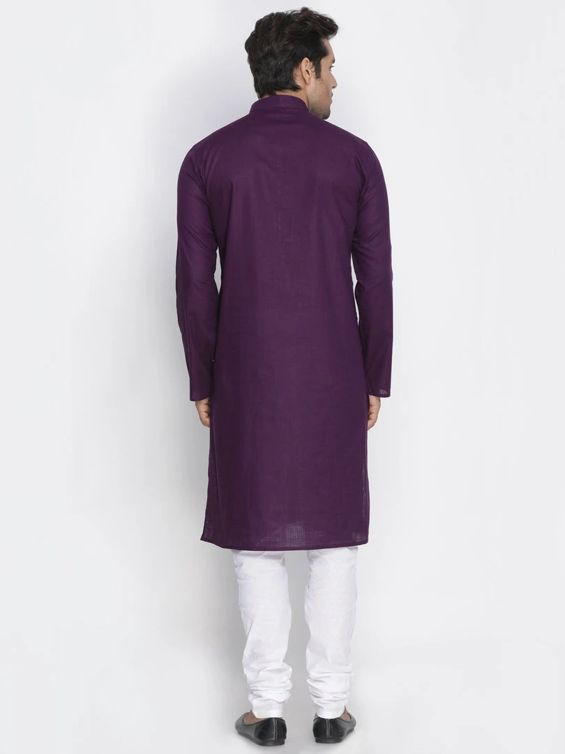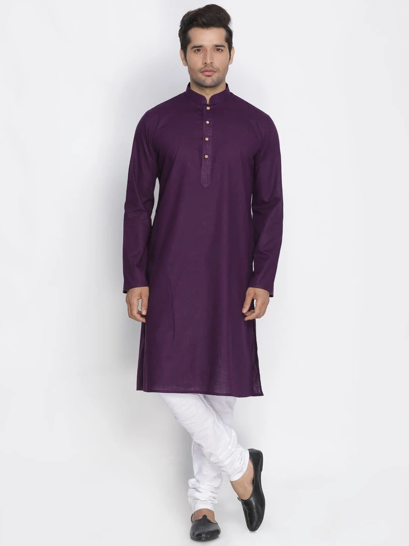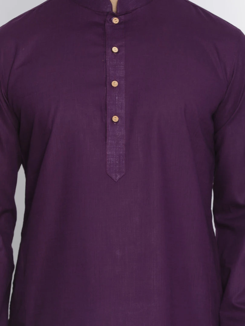 Purple solid straight knee length kurta, has a mandarin collar, button placket, long sleeves, straight hem