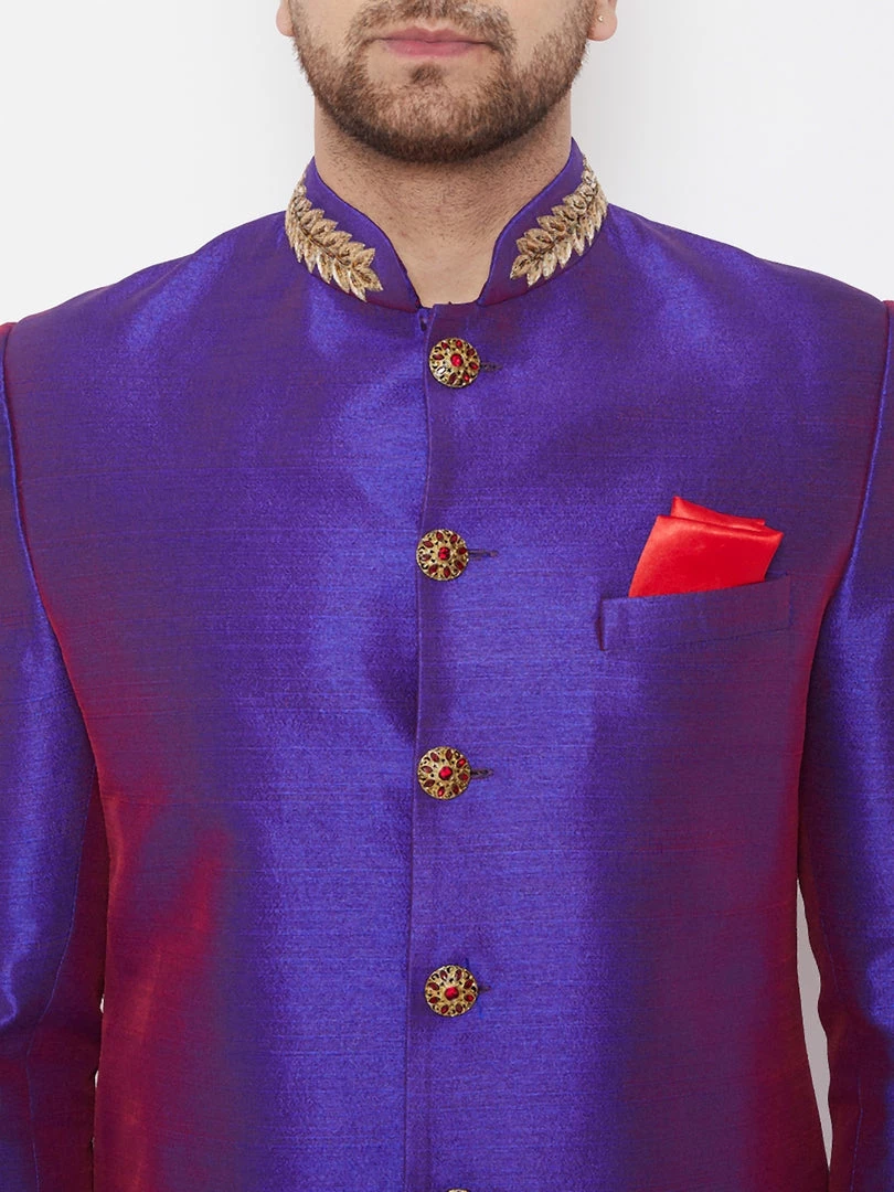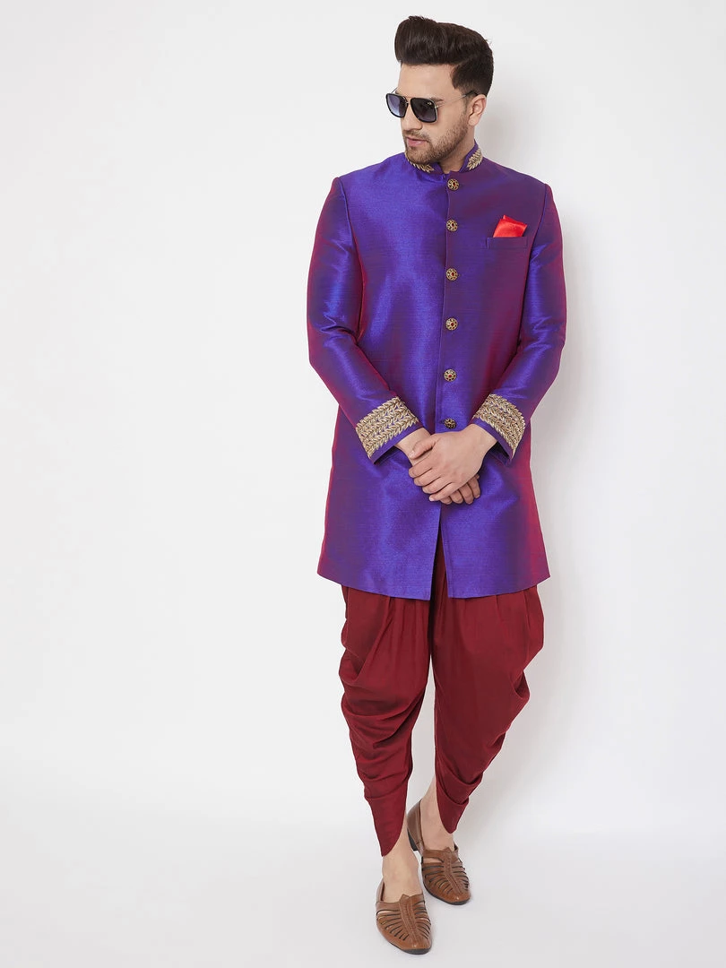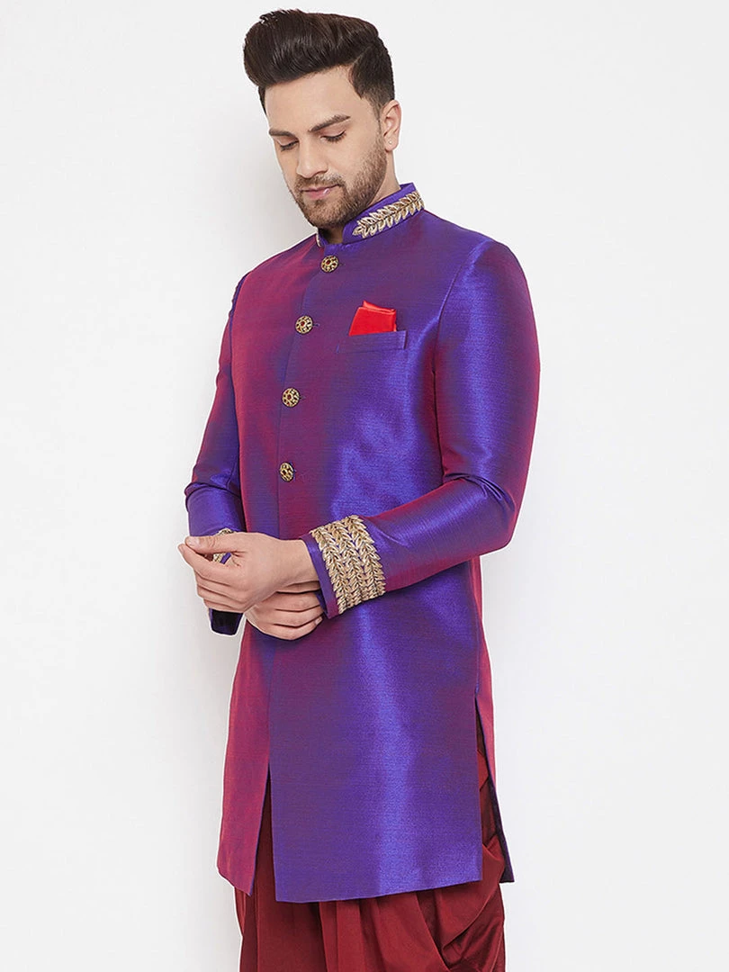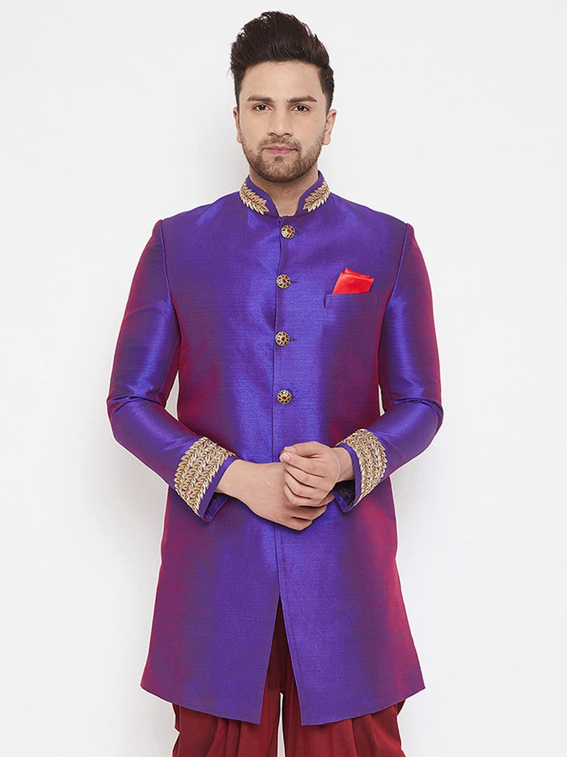 Classy Indowestern Pattern Ethnic Sherwani in 2-Tone Silk Blend Fabric, Has Zardozi Embroidery On Collar, Cuffs.