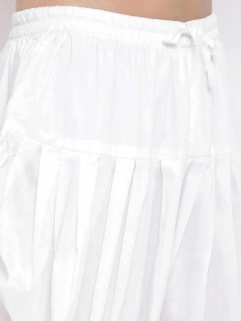 White solid cowl dhoti pant, has elasticated waistband and drawstring closure