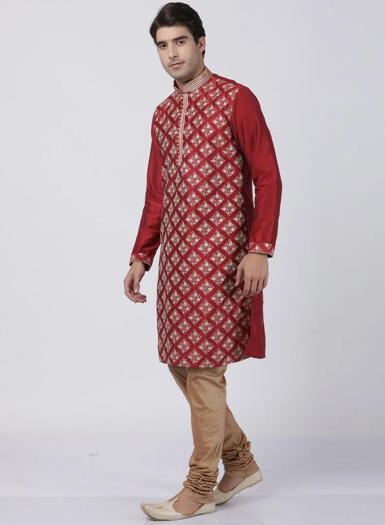 Sport this classic kurta set from VASTRAMAY this season. Dress this piece up with your favorite accessories and head out to any family event in style.