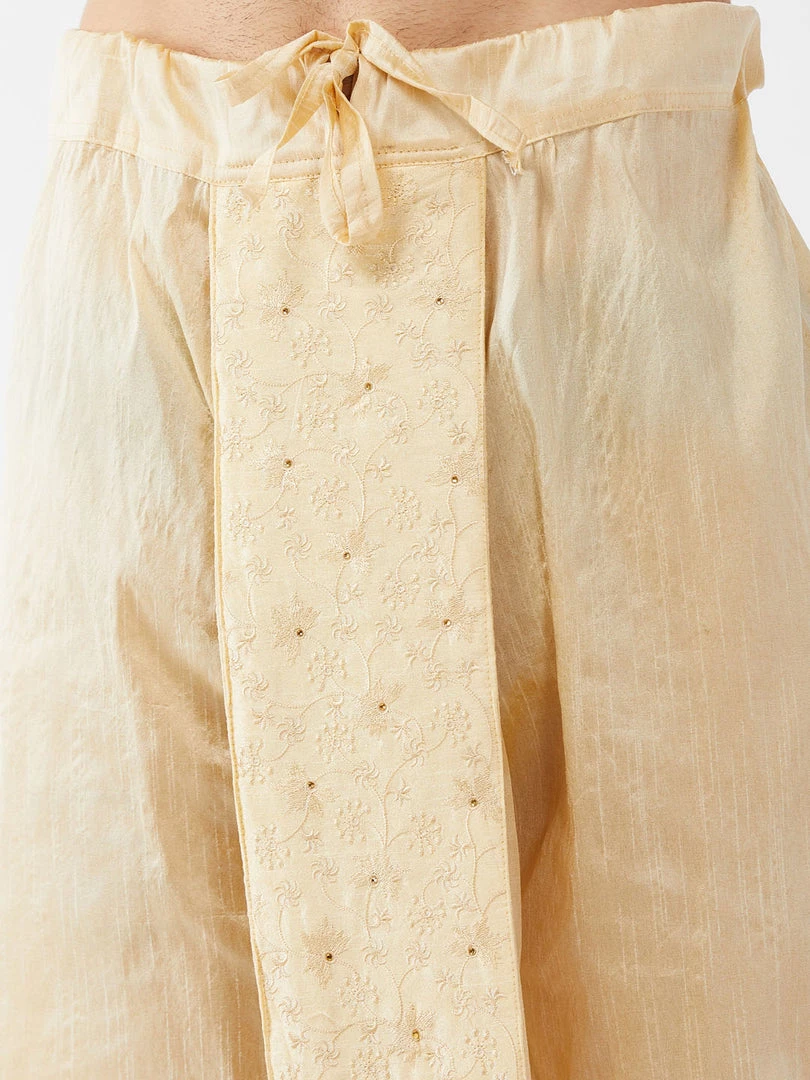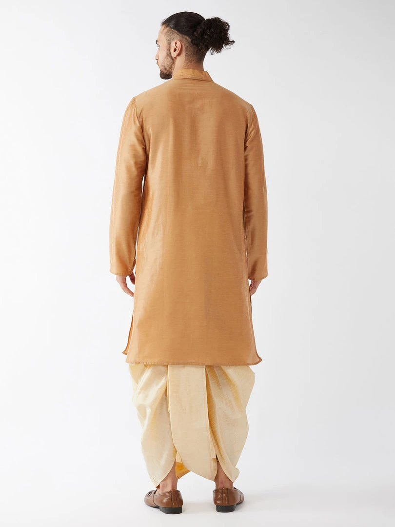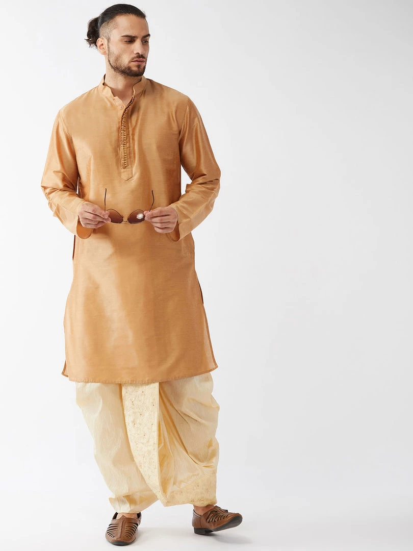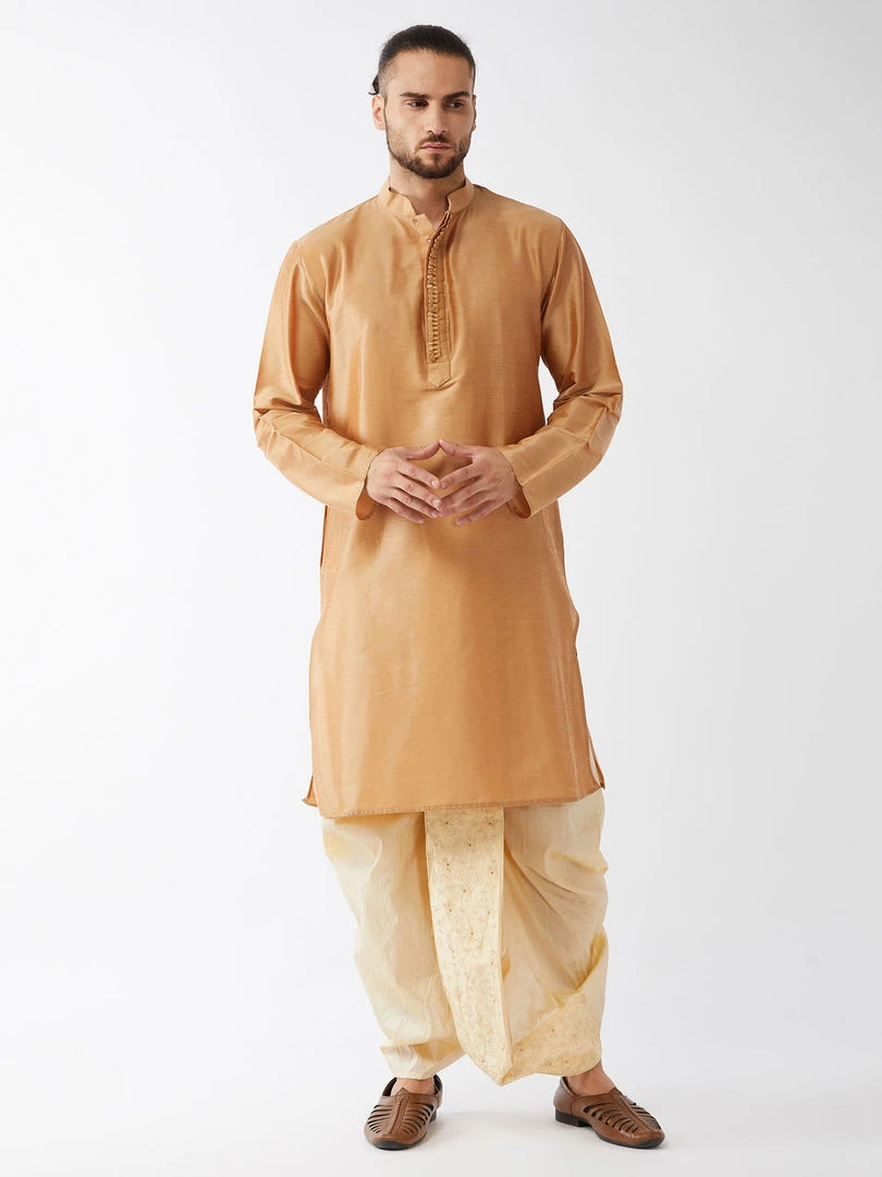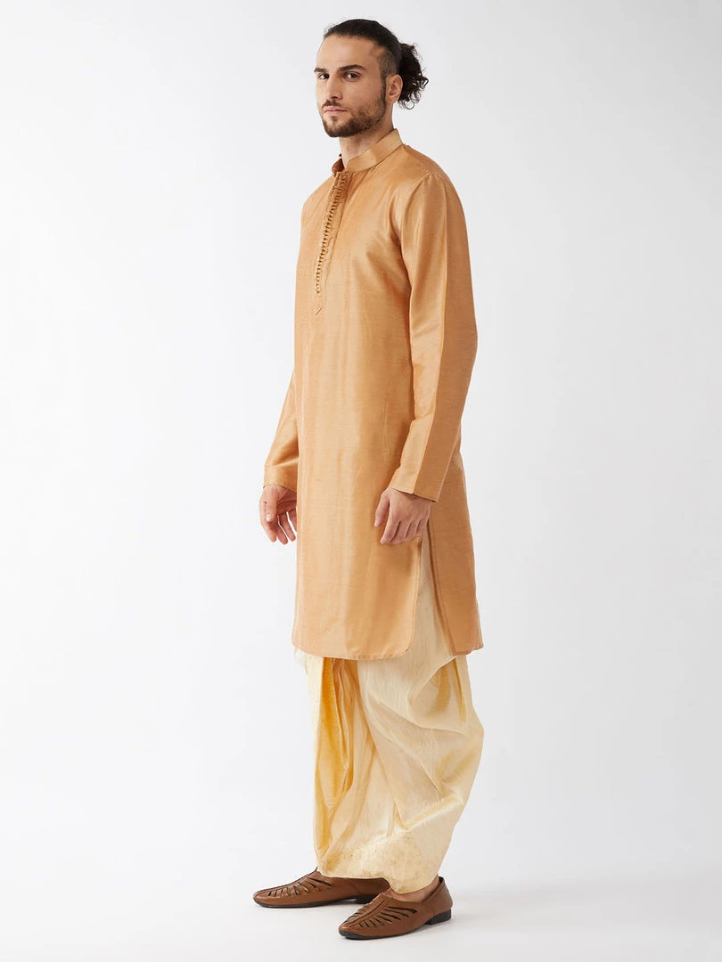 Rose Gold and Gold Solid kurta with Embroidered dhoti pant set