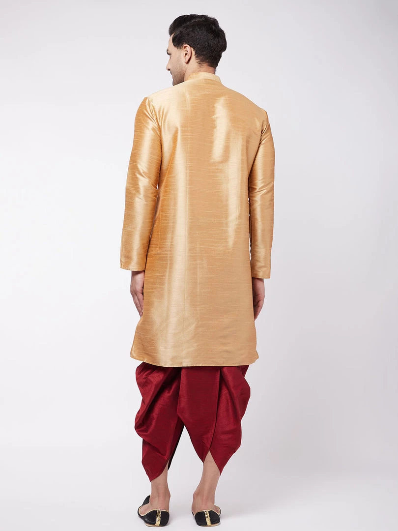 Rose Gold Solid Kurta with Maroon Traditional Dhoti