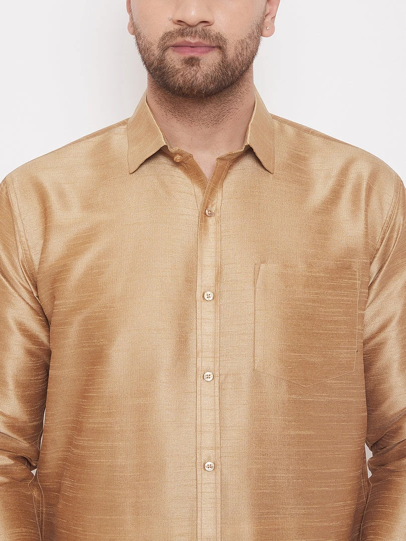 Rose gold solid casual shirt, has a shirt collar, long sleeves, straight hem, one patch pocket