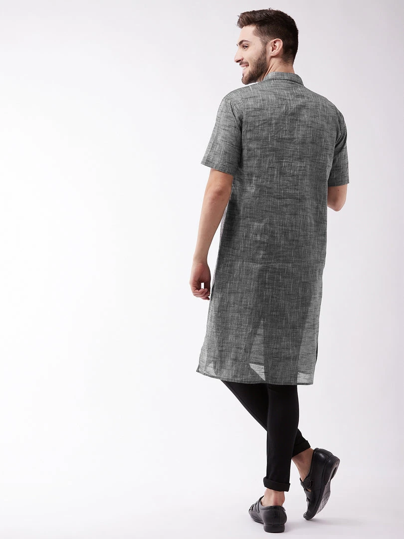 Vastramay Men's Solid Grey Pure Cotton Kurta