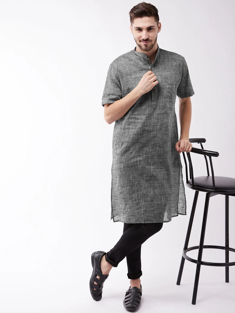 Vastramay Men’s Solid Grey Pure Cotton Kurta