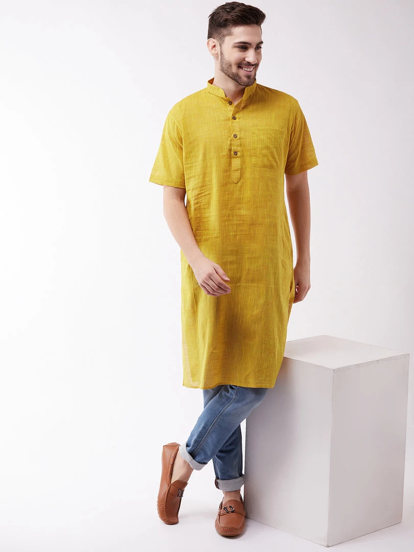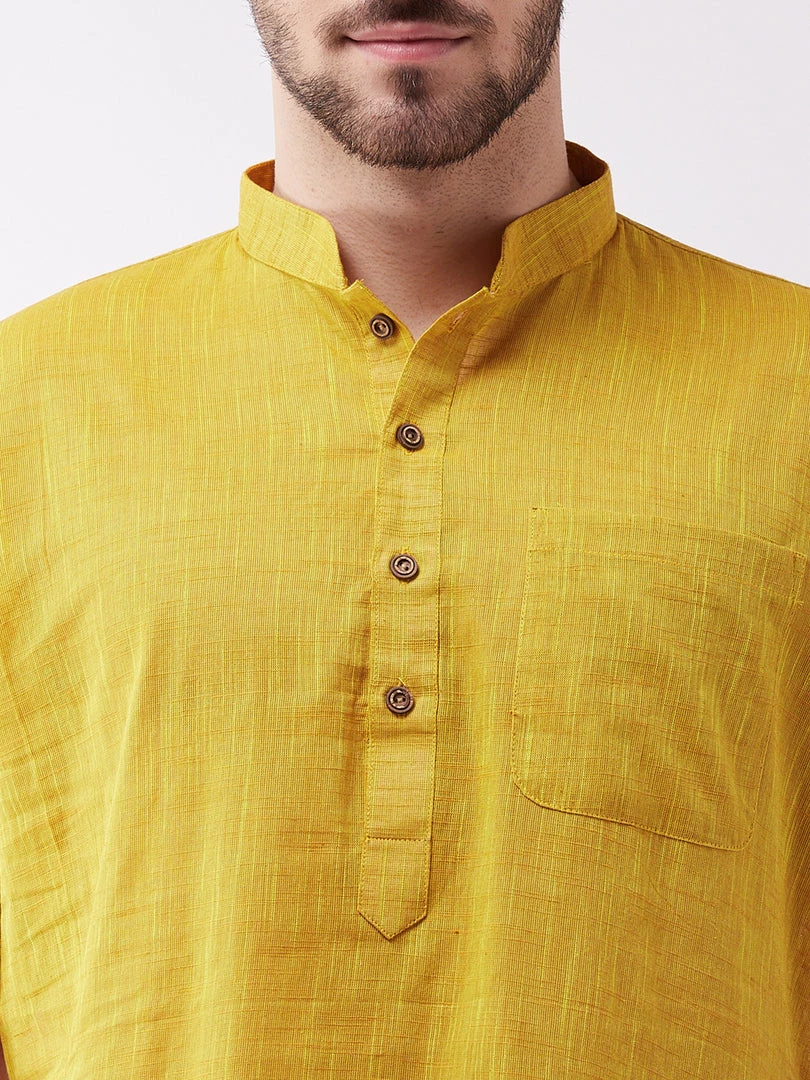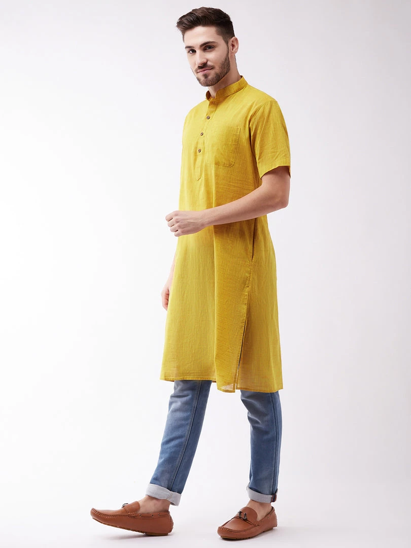 Vastramay Men’s Solid Yellow Pure Cotton Kurta
