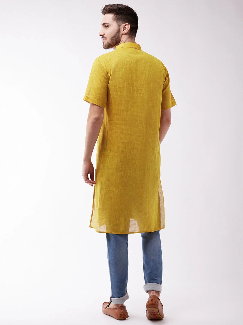 Vastramay Men's Solid Yellow Pure Cotton Kurta