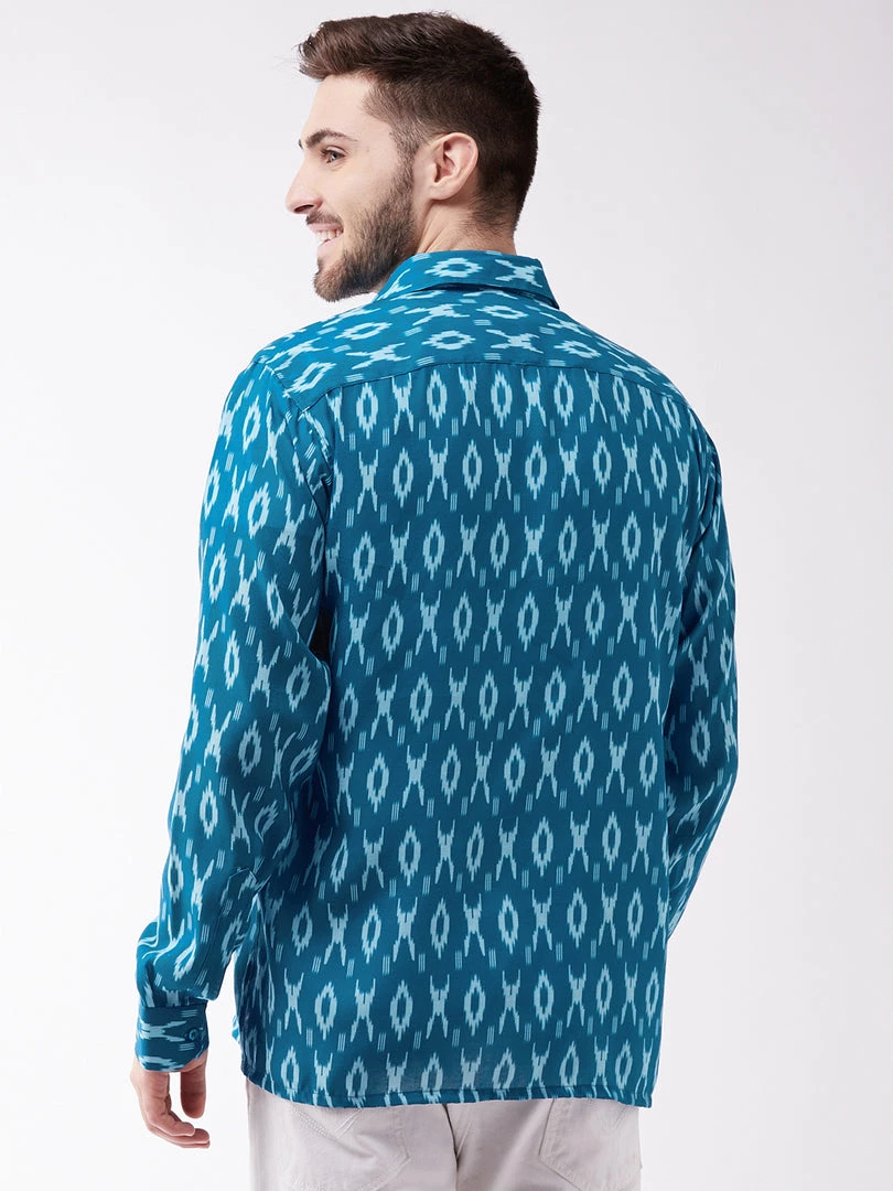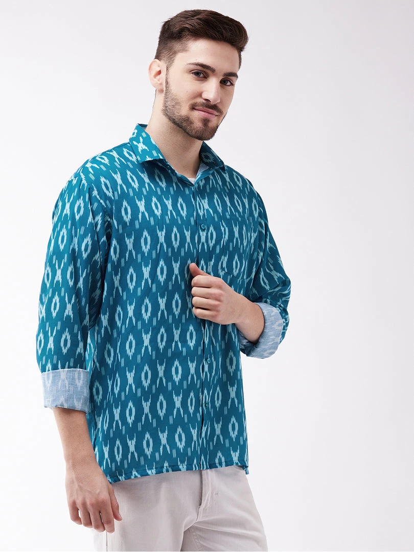 Traditional Ikkat Design Classic Shirt, has a shirt collar, Long sleeves, straight hem, one patch pocket