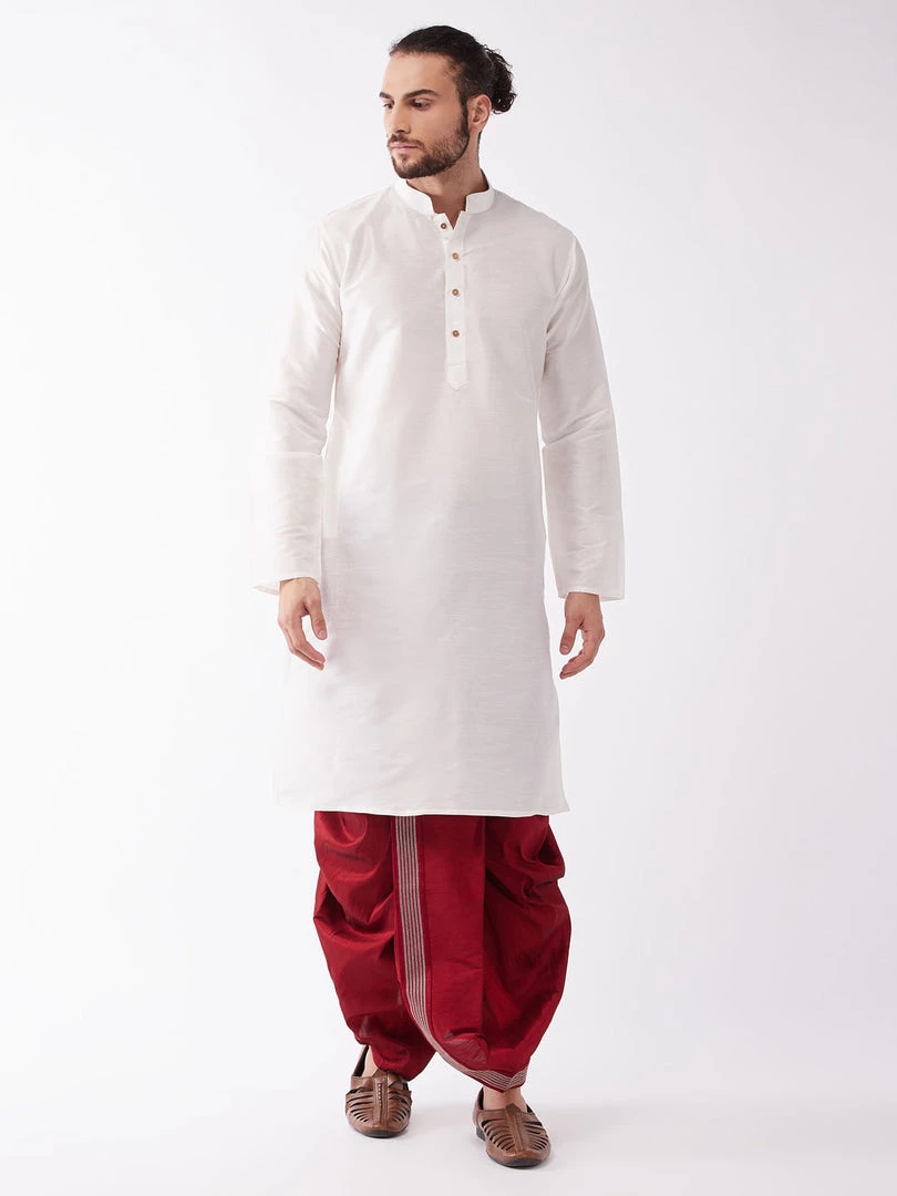 White and Maroon Solid kurta with Embroidered dhoti pant set