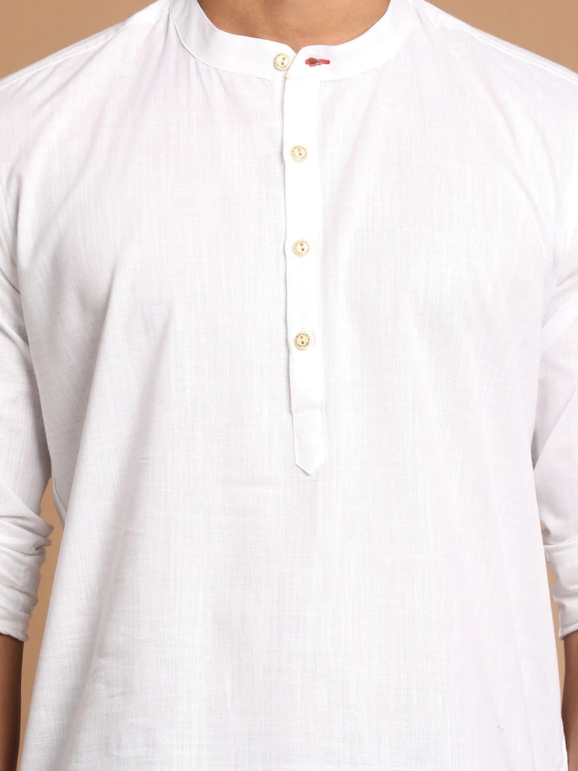 White color solid short kurta, has a mandarin collar, long sleeves, straight hem, button placket