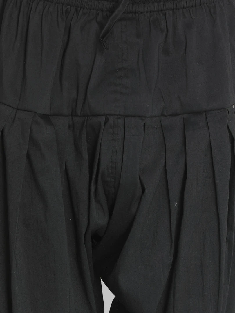 Black solid patiala pant, has elasticated waistband and drawstring closure