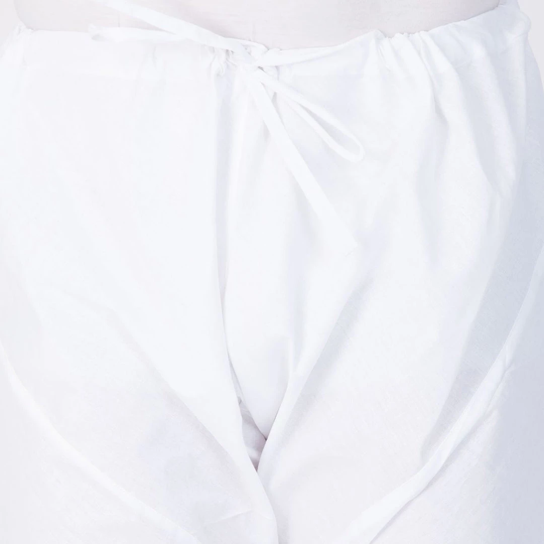 White solid pyjama, has drawstring closure