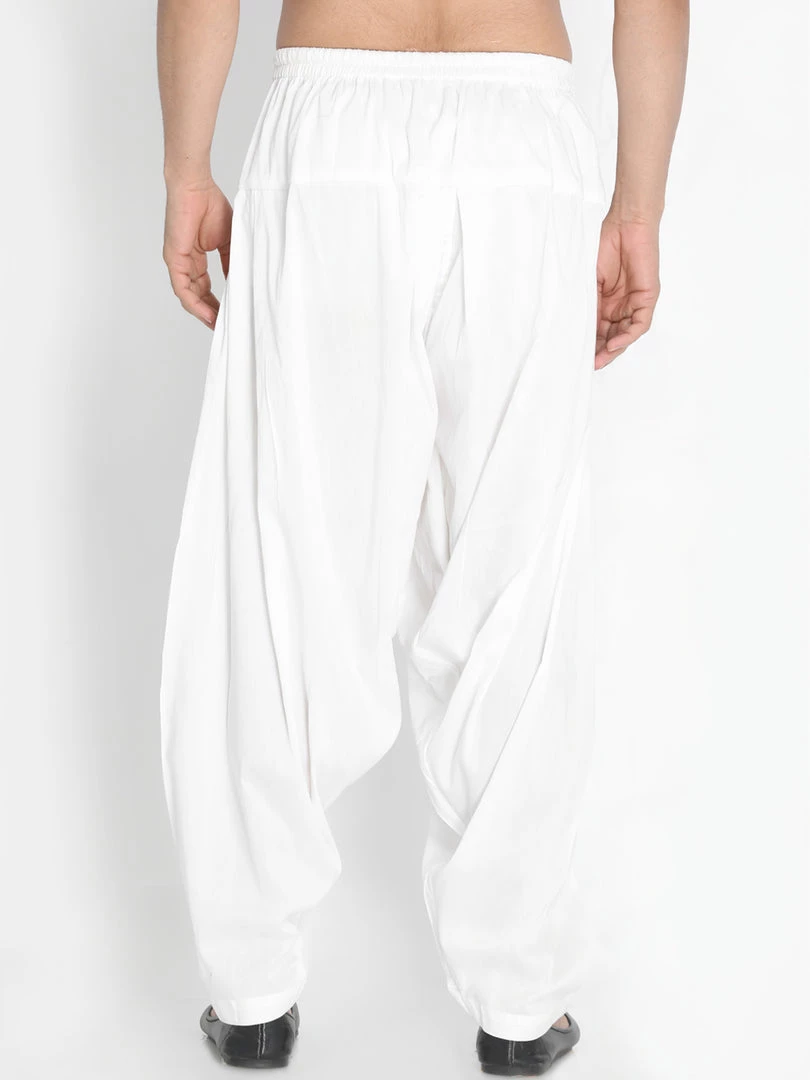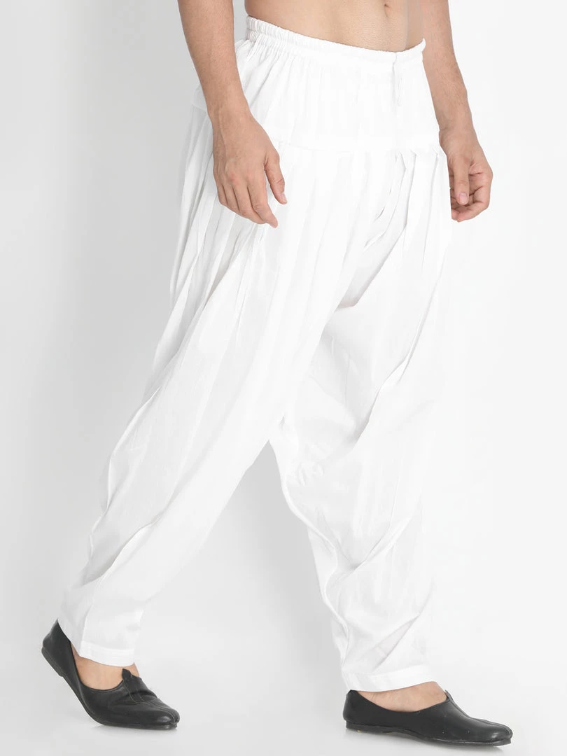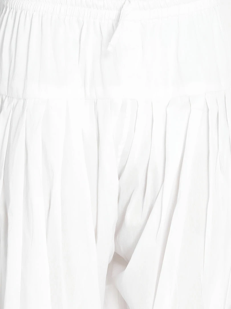 A pair of white solid Patiala pyjama, has an elasticated waistband and drawstring fastening