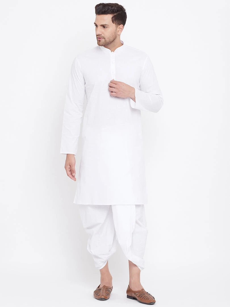 White solid kurta with solid dhoti pant.