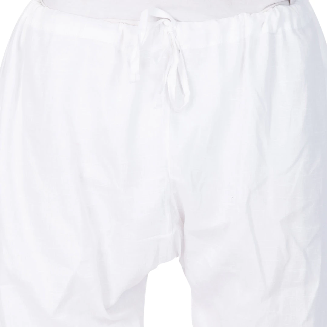 White straight knee length kurta, has a mandarin collar, long sleeves, straight hem, side slits