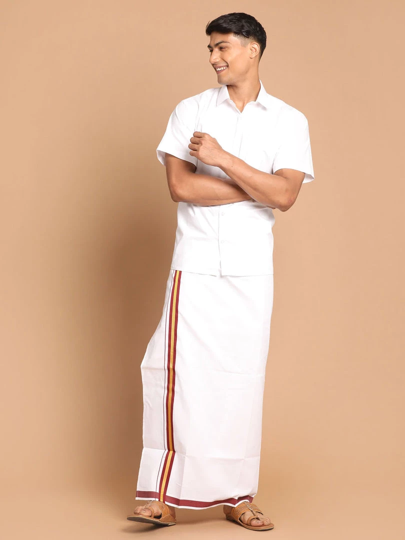 Vastramay brings to you this stylish South Indian style ethnic shirt and ready-to-wear mundu vesty style dhoti pant set for. These are perfect shirt for any occasion including Festivals, ceremonies, Weddings, and Birthday parties. Popularly worn in South India on Vesty Mundu Dhoti along with an Angavastram.