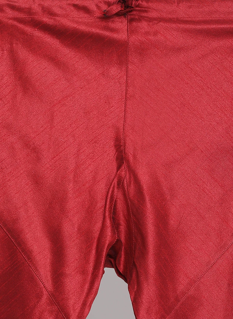 Maroon solid churidar, has drawstring closure