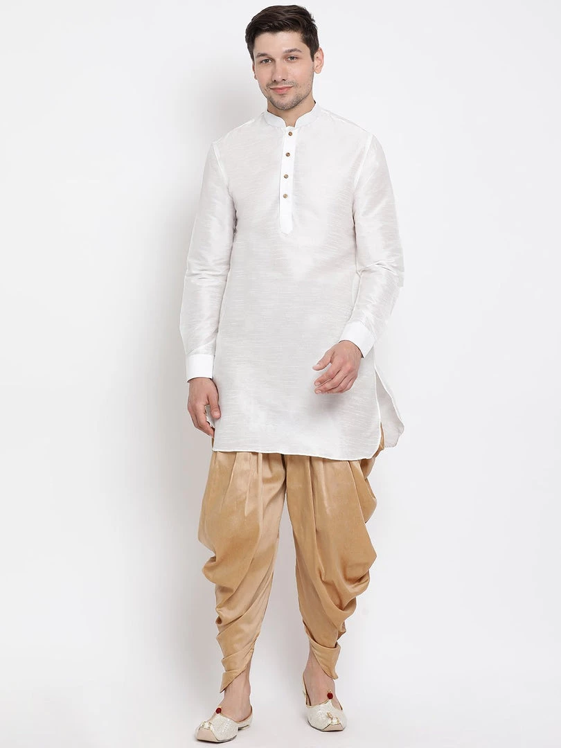 White and golden solid kurta and dhoti pant set