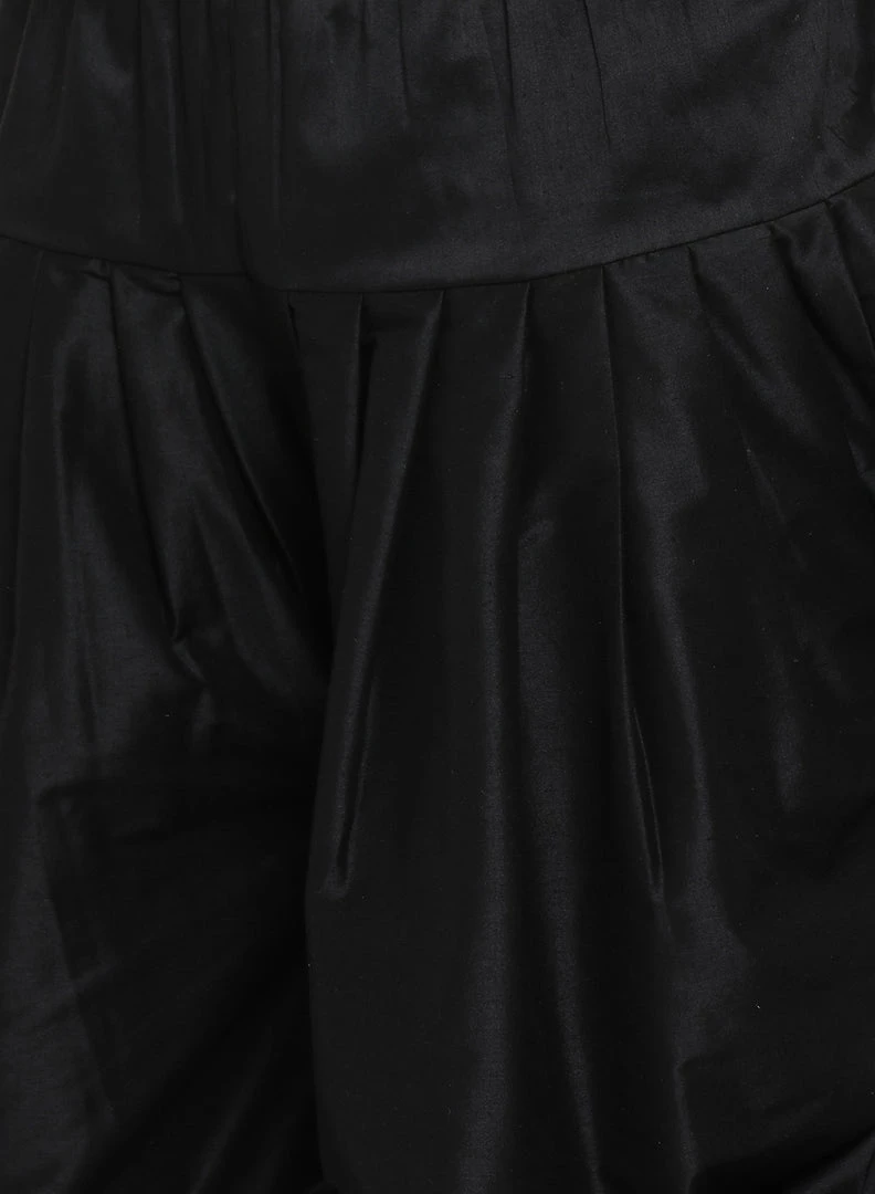 Black solid dhoti pant, has elasticated waistband and drawstring closure
