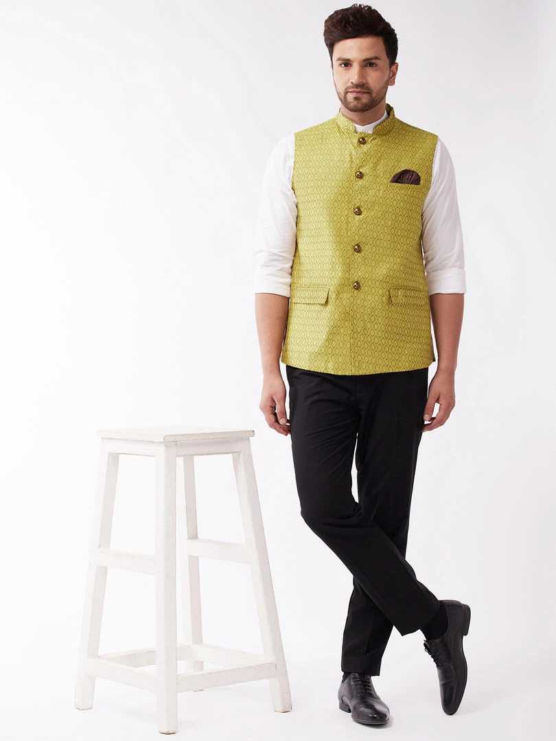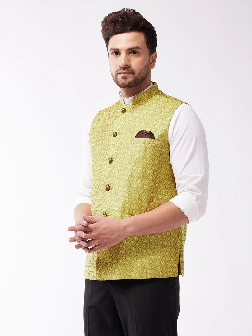 Vastramay Men’s Yellow Silk Blend Nehru Jackets