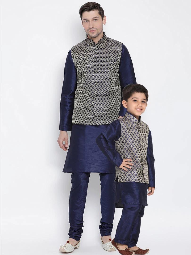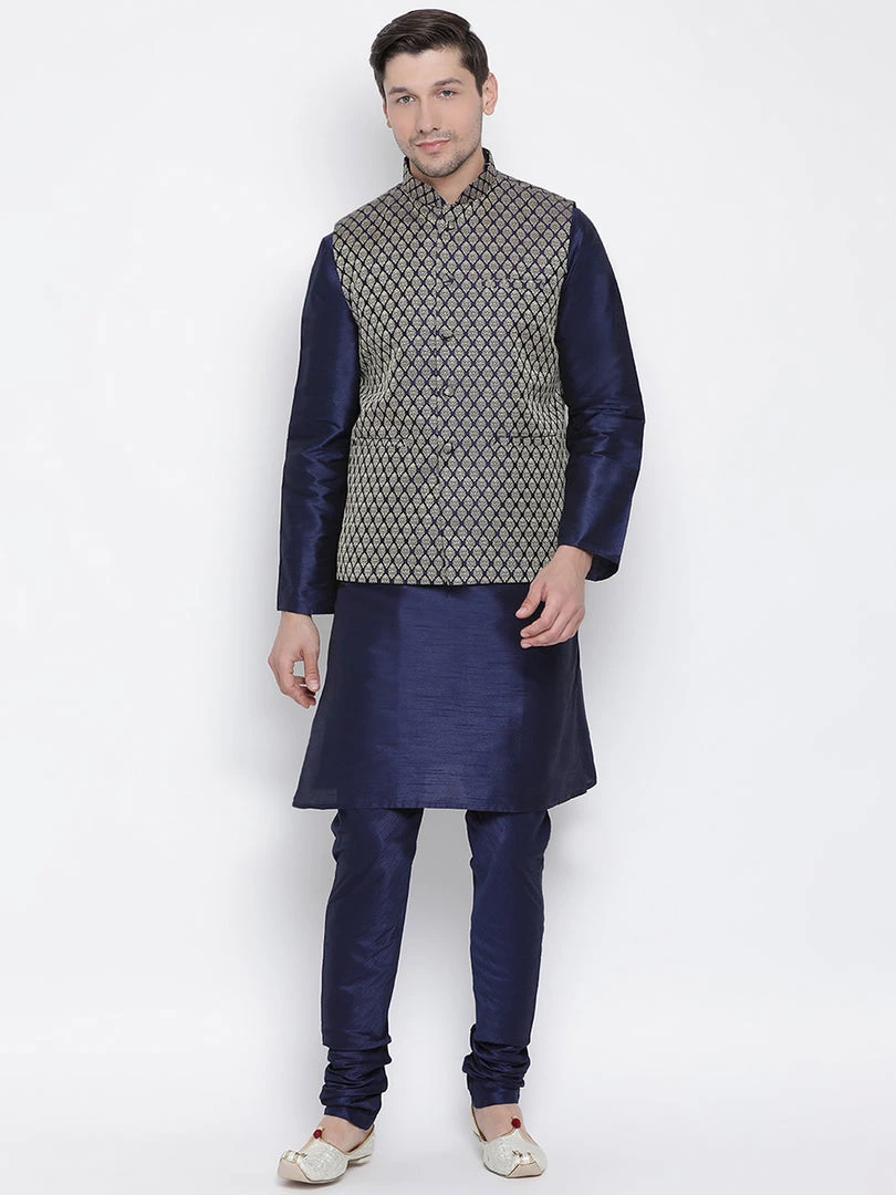 Sport this classic kurta jacket set from VASTRAMAY this season. Dress this piece up with your favorite accessories and head out to any family event in style.
