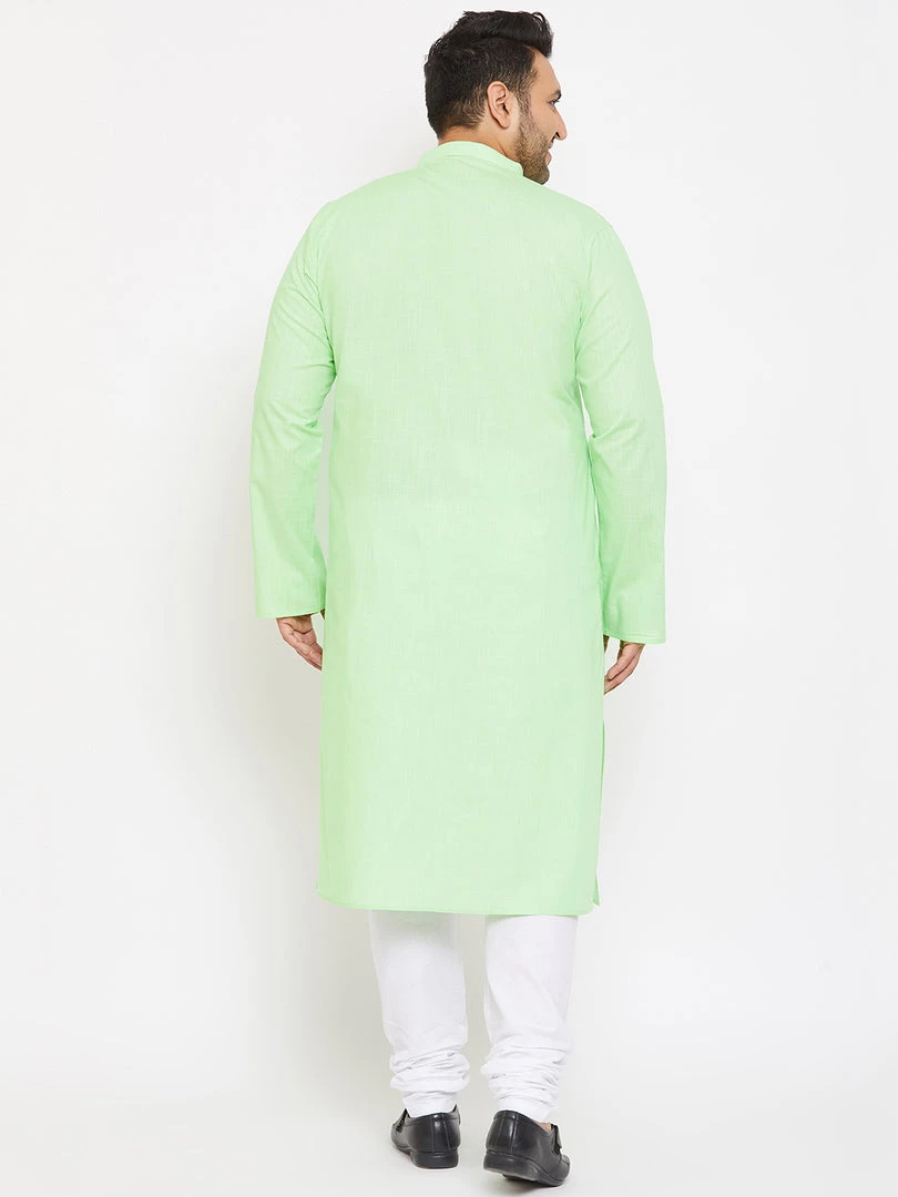 Mint green solid knee length straight kurta, has a mandarin collar, long sleeves, button placket, straight hem, side slits