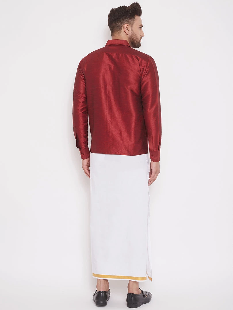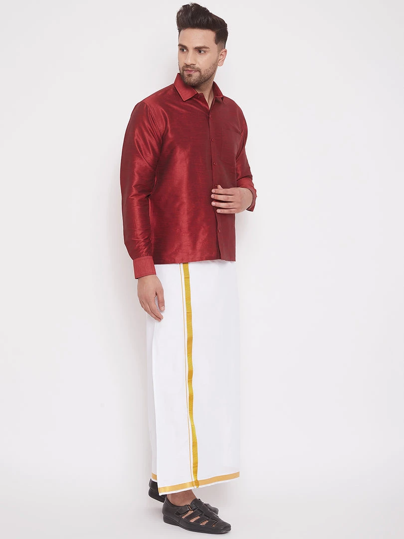 Vastramay brings to you this stylish South Indian style ethnic half sleeves shirt and ready-to-wear mundu vesty style dhoti pant set for. These are perfect relaxed shirts for any occasion including Festivals, ceremonies, Weddings, and Birthday parties. Popularly worn in South India on Vesty Mundu Dhoti along with an Angavastram.