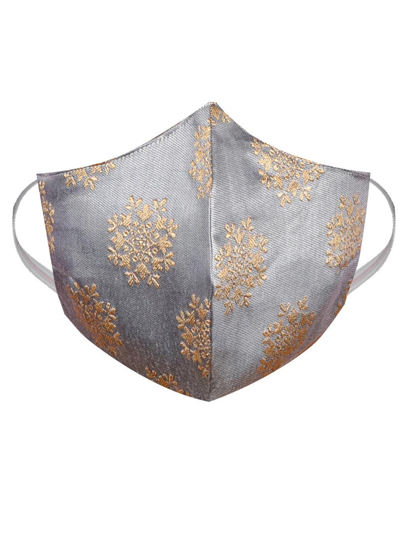 Vastramay Rakhi Unisex 2 Ply Self Design Banarasi Brocade Reusable Face Mask