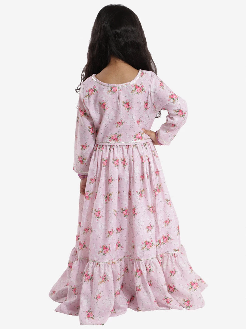 Cotton Linen Girls Embellished Printed Crop Top And Ruffle Skirt Set