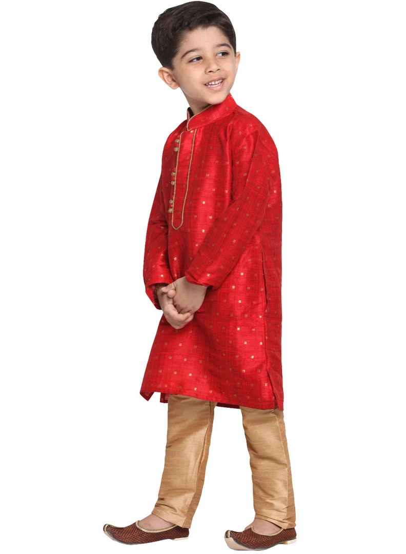 Maroon and rose gold self-design kurta with pyjama