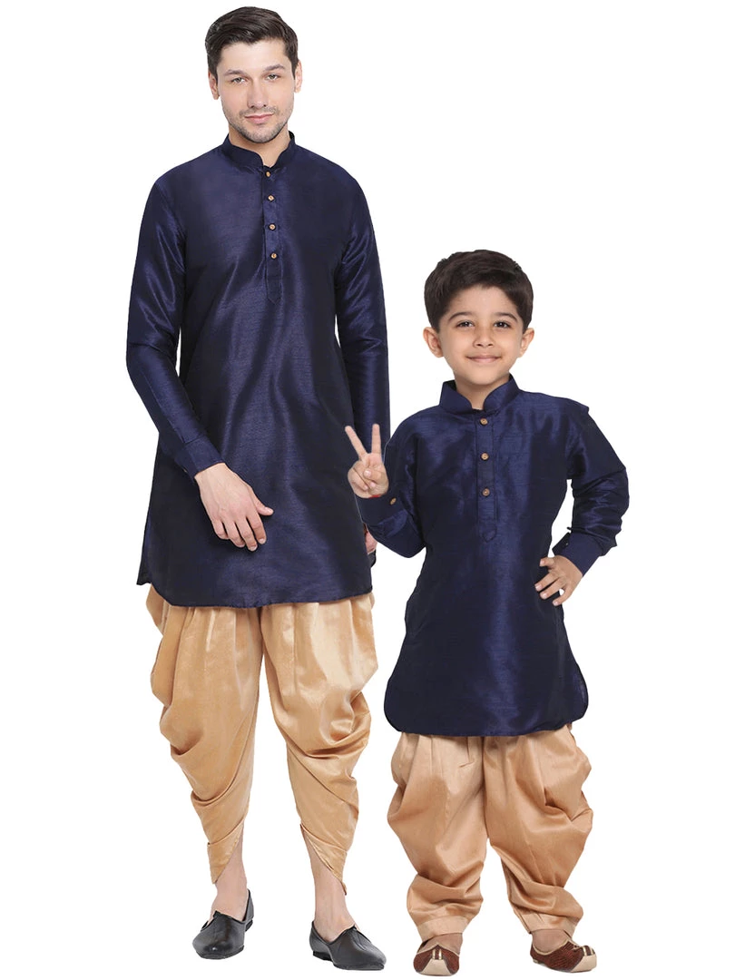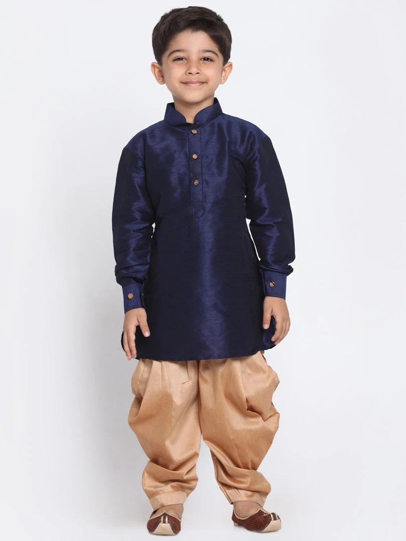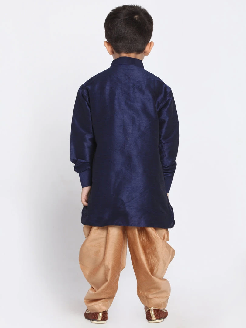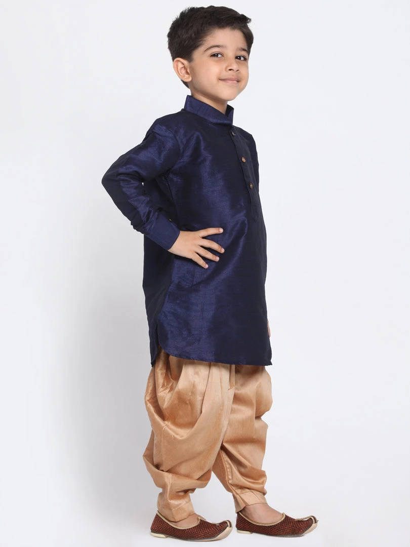 Navy blue and rose gold solid kurta and dhoti pant set