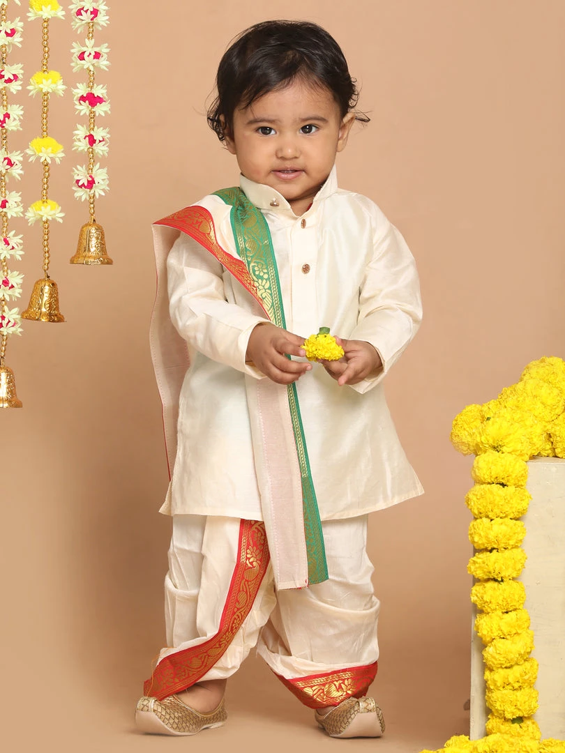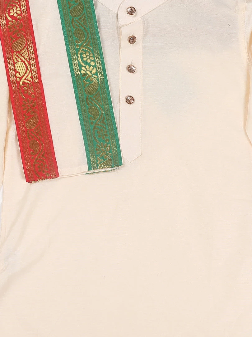 Showcase your little boy’s unique personal style in this cream kurta set.