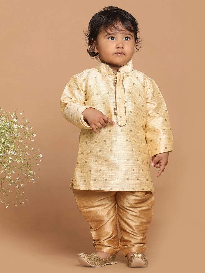 Celebrate your little one’s personal style and roots with this elegant Gold-coloured kurta set.