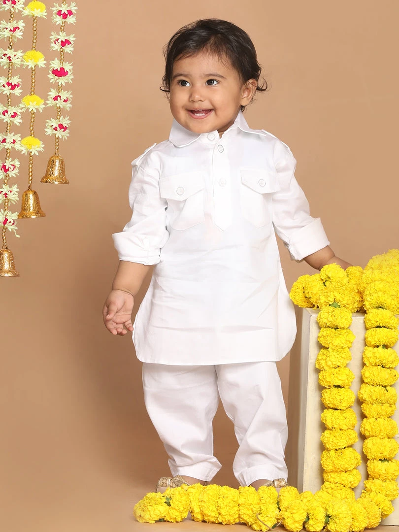 White solid Kurta with Pyjamas