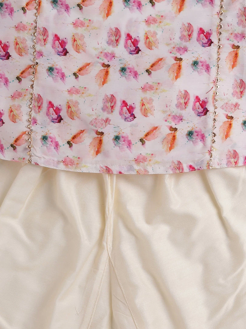 White and multi-colored printed kurta with pyjama