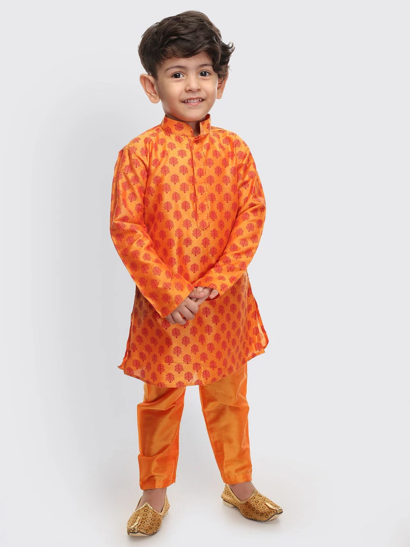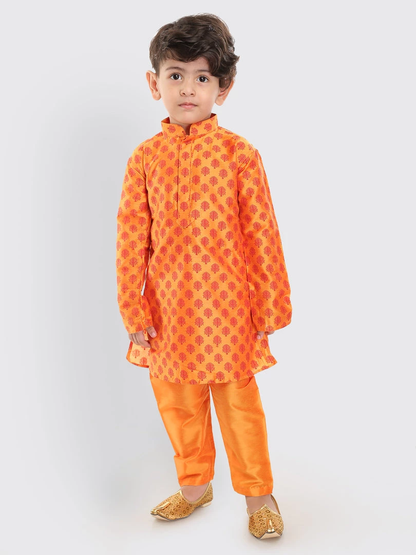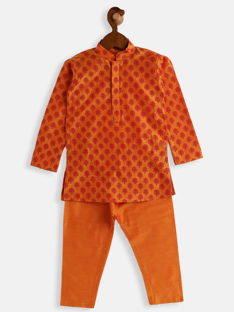 Orange and red color printed kurta with pyjama
