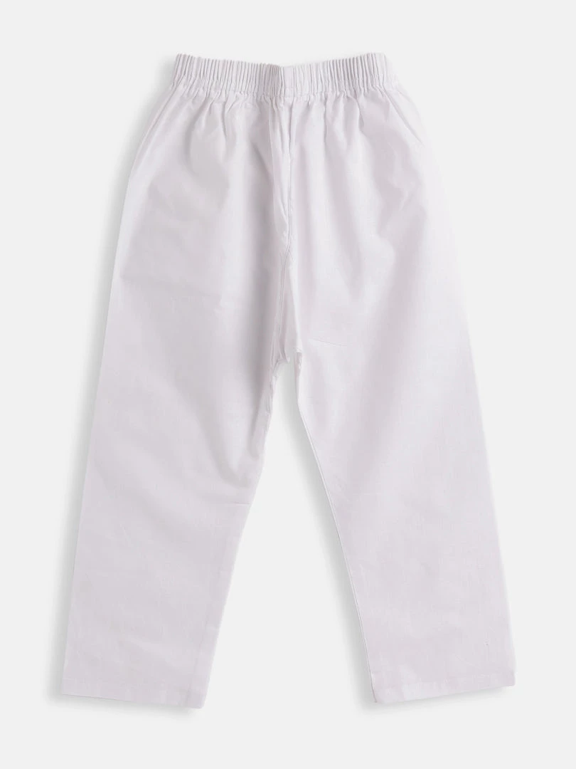 White Solid pyjama, has an elasticated waistband, slip-on closure