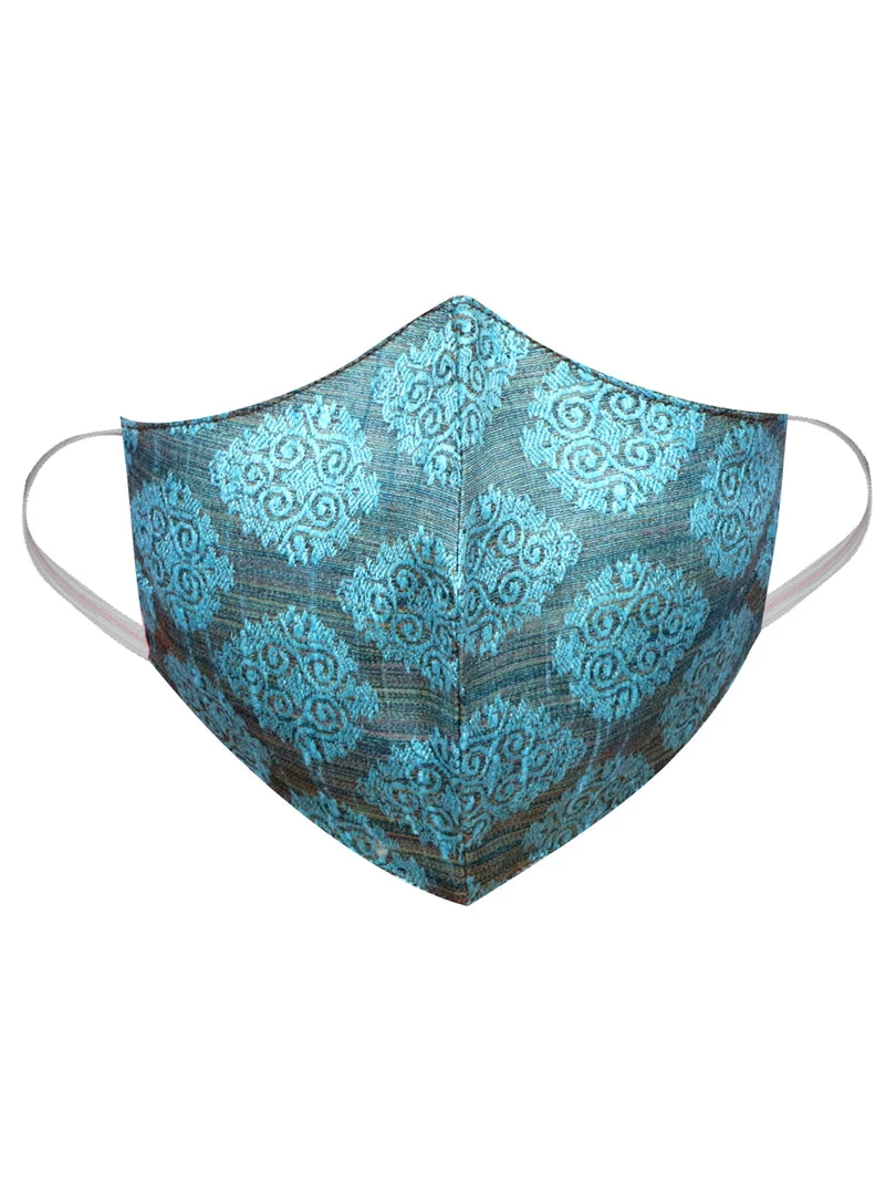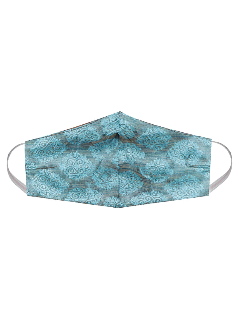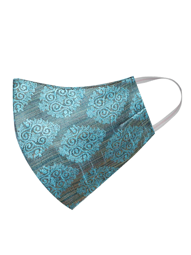 Vastramay Unisex 2 Ply Self Design Blue Brocade Reusable Face Mask Rakhi