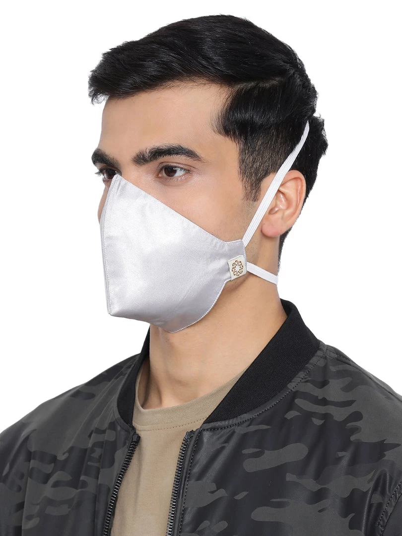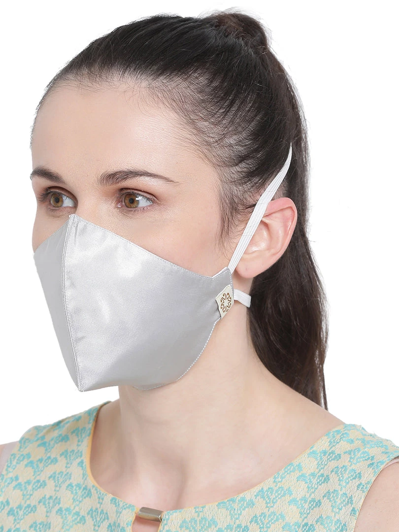 Vastramay Unisex 3 -Ply Solid Reusable Anti-Pollution, Comfortable Large Coverage With Head Band Wellness Masks In Silver – Pack Of 1