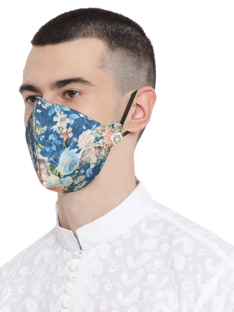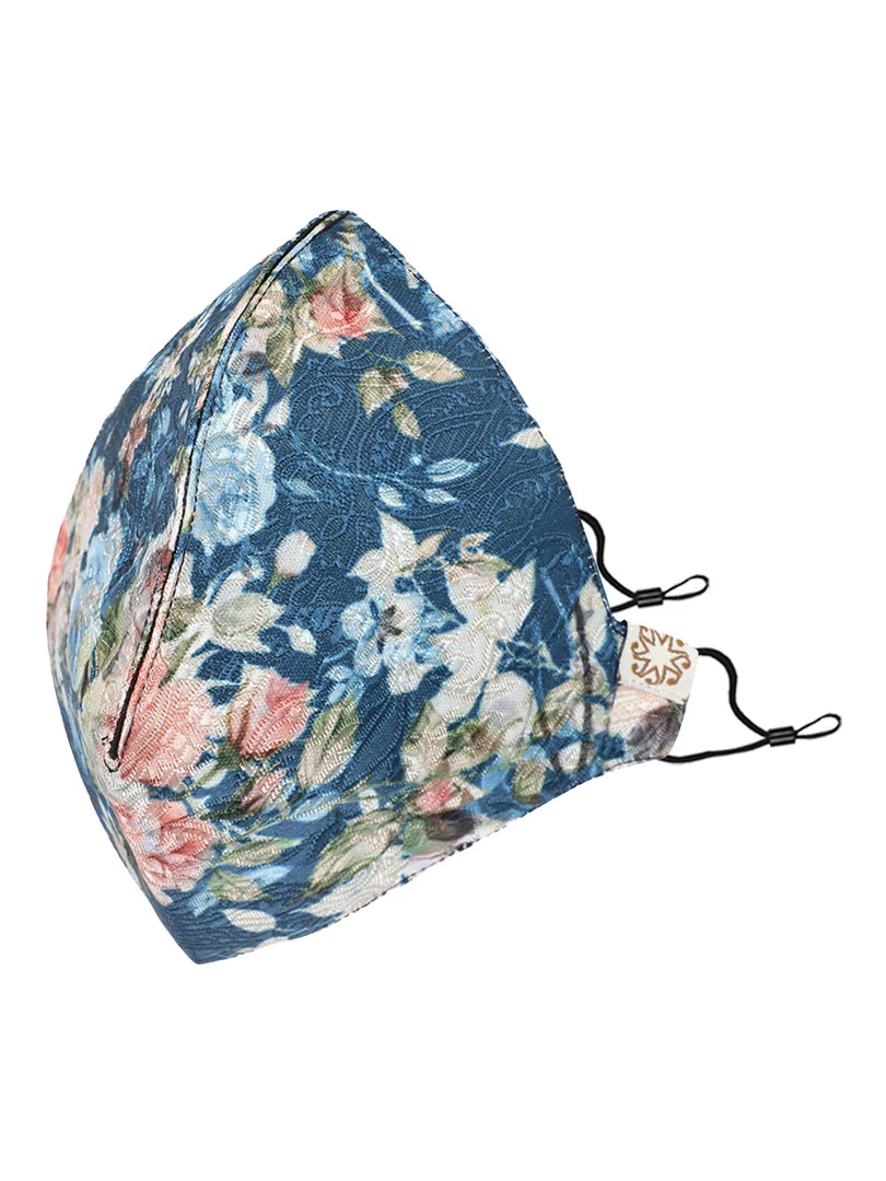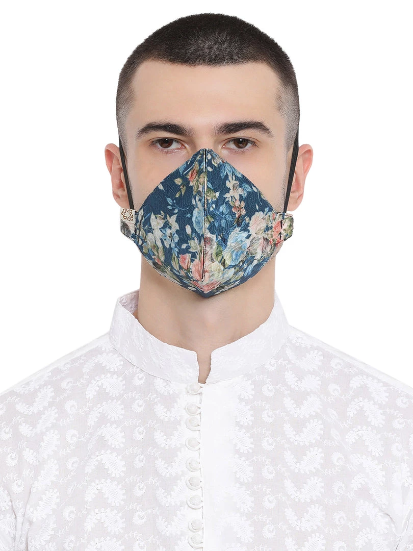 Vastramay Unisex 4 -Ply Floral Print On Embroidered Base Reusable Anti-Pollution, Comfortable Large Coverage With Ear Loops Wellness Masks In Blue – Pack Of 1 Rakhi