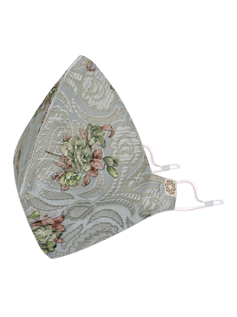 Vastramay Unisex 4 -Ply Floral Print On Embroidered Base Reusable Anti-Pollution, Comfortable Large Coverage With Ear Loops Wellness Masks In Green – Pack Of 1