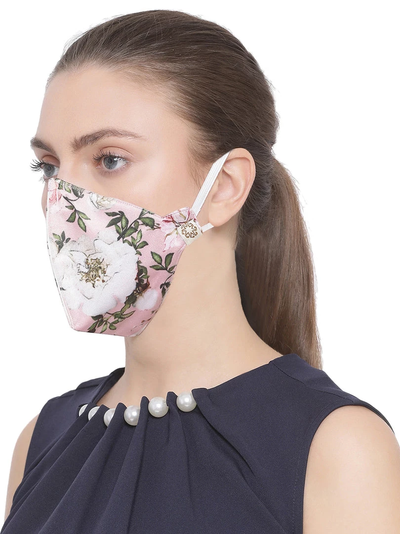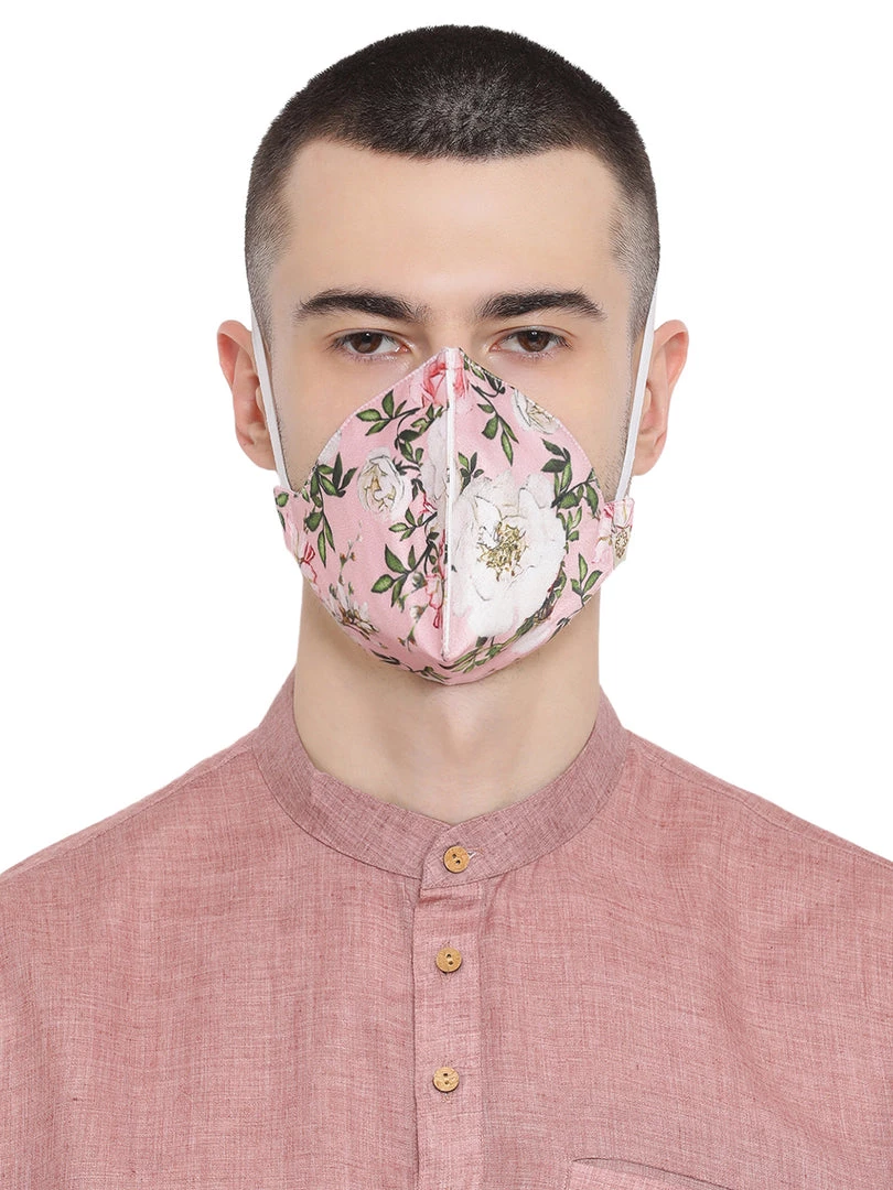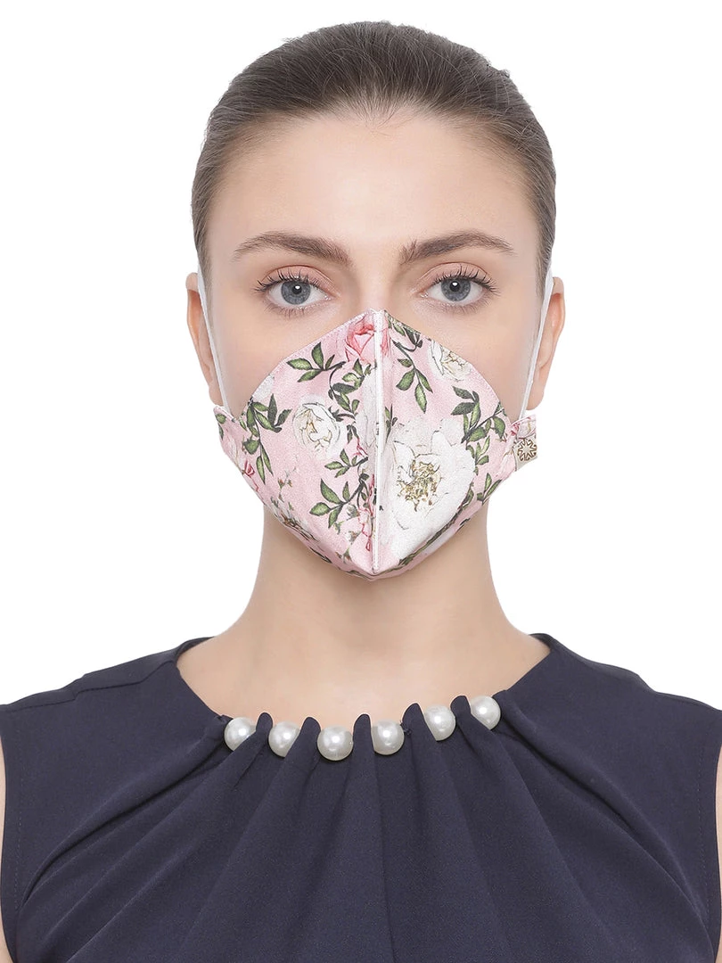 Vastramay Unisex 4 -Ply Floral Printed Reusable Anti-Pollution, Comfortable Large Coverage With Ear Loops Wellness Masks In Pink – Pack Of 1 Rakhi