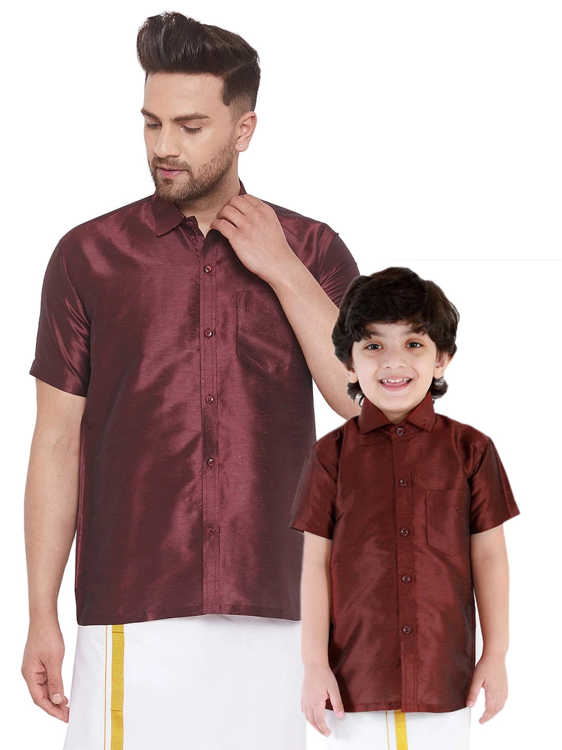 Wine solid regular shirt, has a shirt collar, half sleeves, straight hem, full front button placket, side slits and a patch pocket
